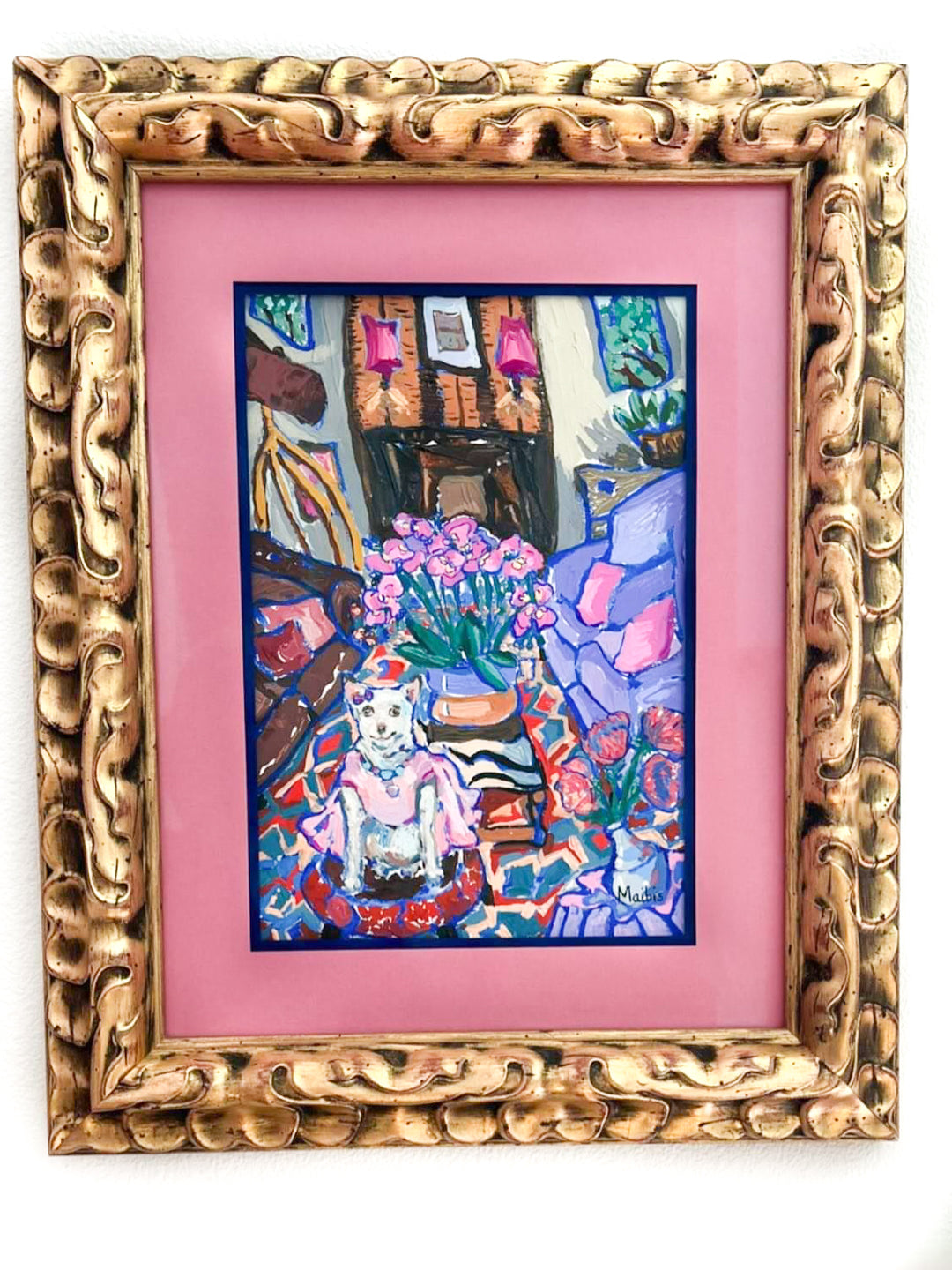 I've been collecting Maibis' paintings for a while.She is my favorite artist in Switzerland.She has painted all my girls.This is Lolita.We love it!